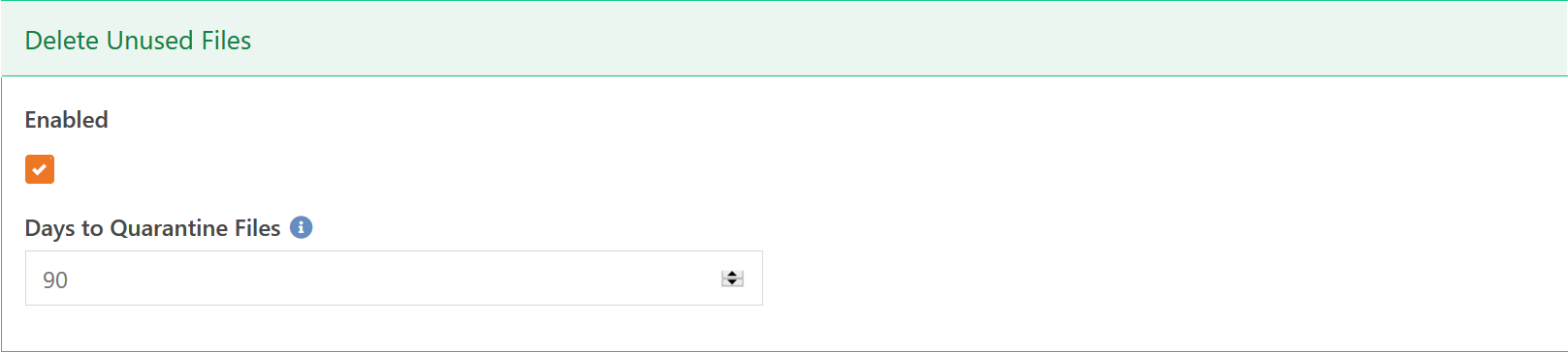 Below you will read about a page that lets you find unused files. Under normal configuration, when you remove these unused files they are actually placed in a quarantine folder. This ensures they cannot be accessed by normal means so you can find out if they are being used by some external links before they are deleted forever. While in quarantine you can then later restore those files back into the database. This automation step lets you specify how long a file will remain quarantined before it's automatically deleted forever.